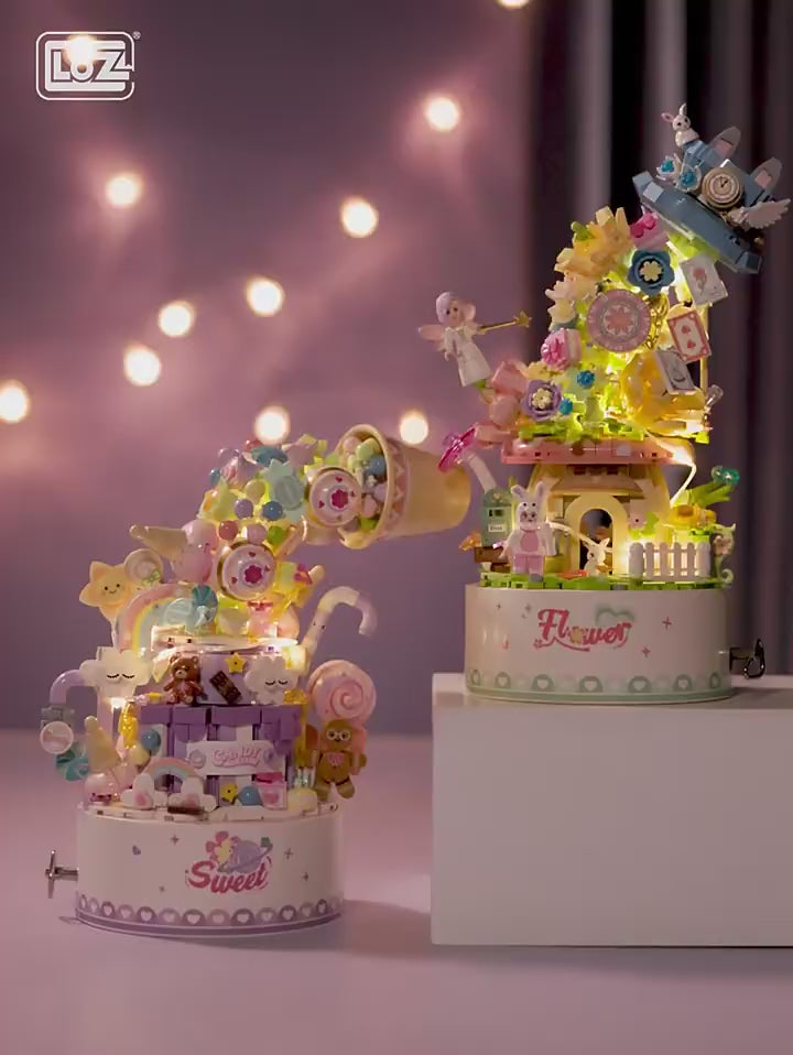LOZ 1953 Candy Wonderland Sweetheart Fluid Music Box Building Blocks Set, 909 PCS