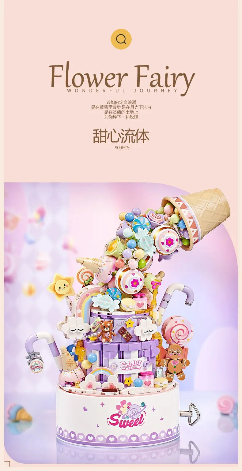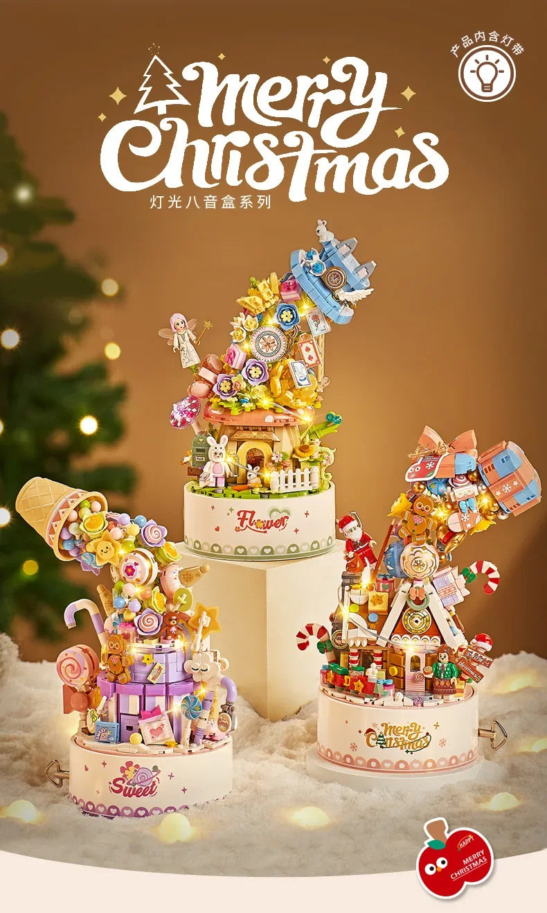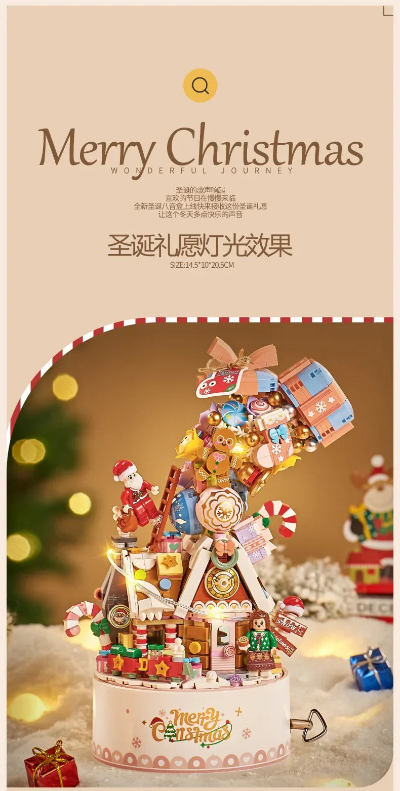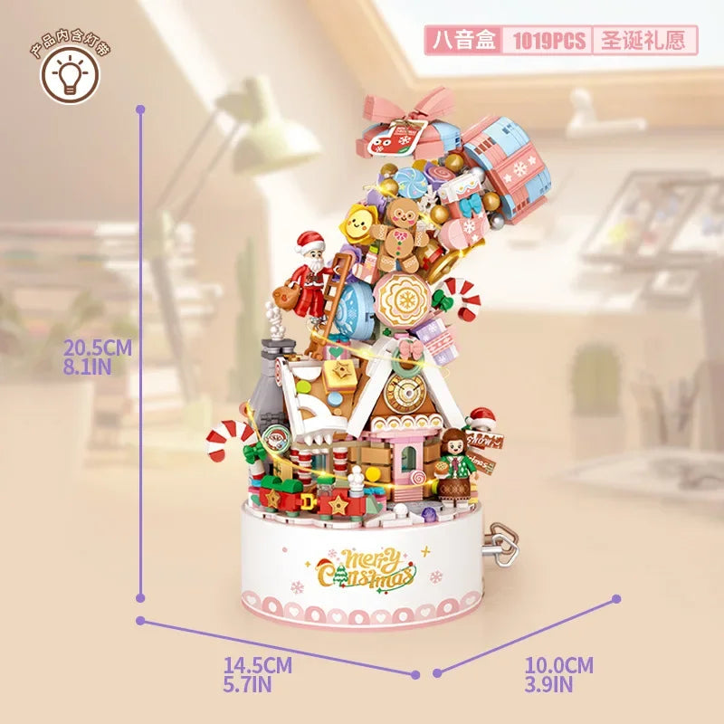 LOZ 1957 Christmas series Revolving music box Christmas Music Box with Santa Clause
