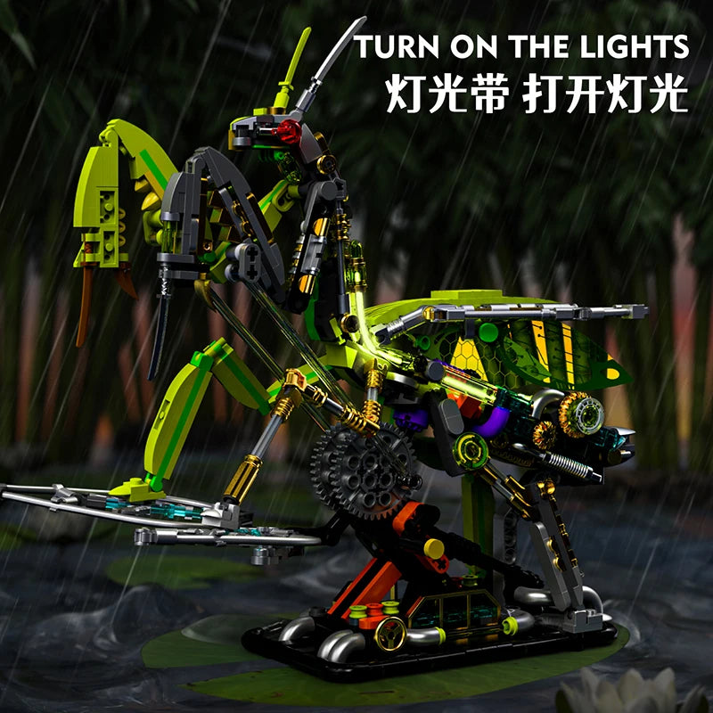 Theme: insects (specifically a praying mantis). The assembled model size is about 27 × 14.5 × 31 cm.