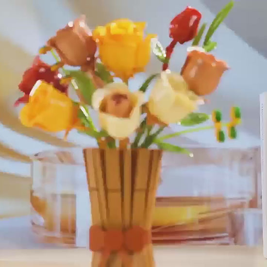 Autumn Rose Bouquet building block set. It is a creative assembly toy that allows users to construct a floral arrangement from small plastic pieces.