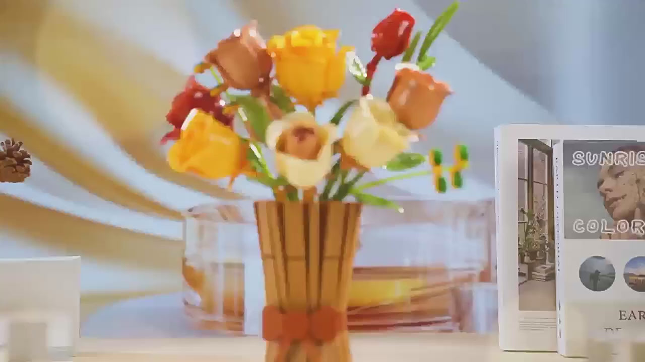 Product: Autumn Rose Bunch of Flowers creative assemble small parts unisex educational puzzle building block toy.