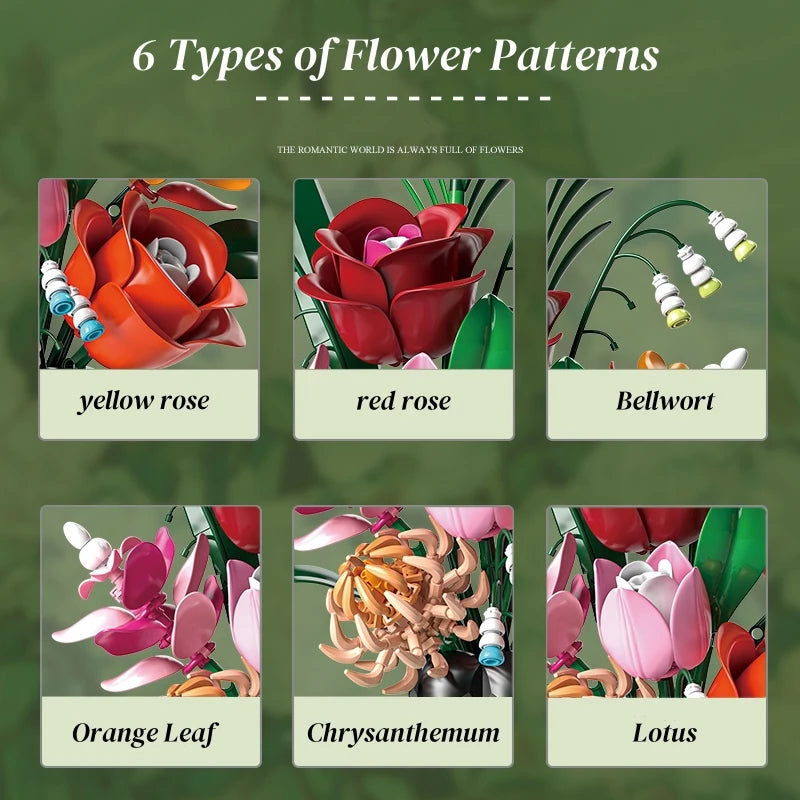- Intended Use: This building block set is designed to be a decorative item for the home or office. The permanent, never-wilting flowers are an alternative to real bouquets and are suitable for display year-round.