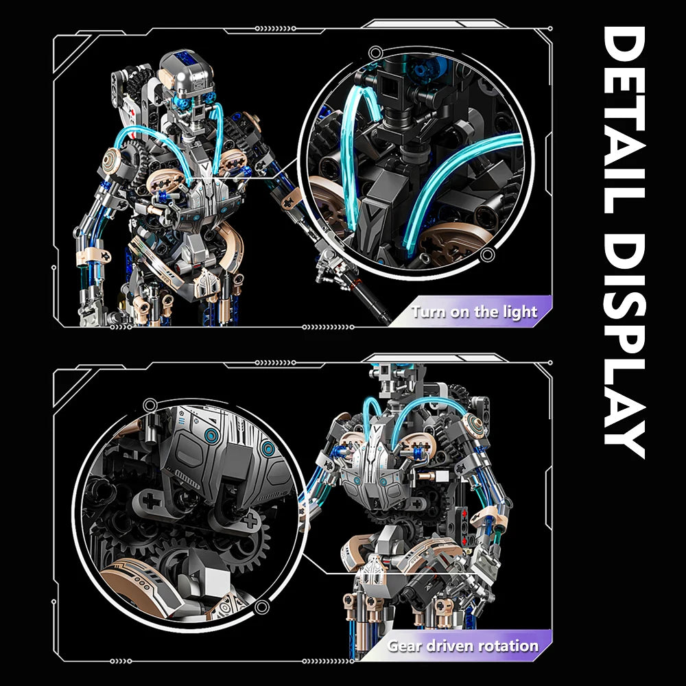 - Design and Features: The robot has poseable joints, allowing it to be arranged in various stances. Some sources state it comes with lights. The set is aimed at an older audience and is often described as a challenging and satisfying build. It is compatible with other major brands of building blocks.