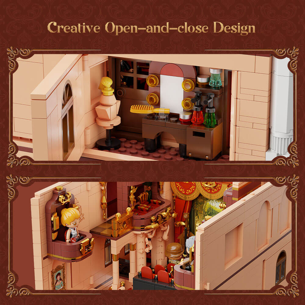 Openable Structure & Expandable Street Scene for Ultimate Interaction. The rear panel opens to reveal the full theater interior, while side connectors integrate seamlessly with other street scene block sets—allowing you to design your own cultural landmark.
